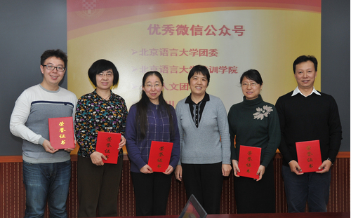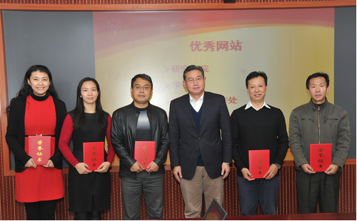 会议表彰了我校2015年度优秀宣传思想阵地。汉语国际教育学部宣传栏、商学院宣传栏、学生处就业指导中心宣传栏、人文社会科学学部宣传栏、校工会宣传栏被评为优秀宣传栏,研究生院网站、学生处网站、孔子学院工作处网站、后勤服务集团网站、教务处网站被评为优秀二级网站,北京语言大学团委微信公众号、北京语言大学培训学院微信公众号、北语人文团学微信公众号、北语AIU微信公众号、北语高翻STI微信公众号被评为优秀微信公众号。李宇明书记、王鲁新副书记和刘伟副书记分别为他们颁发了荣誉证书。