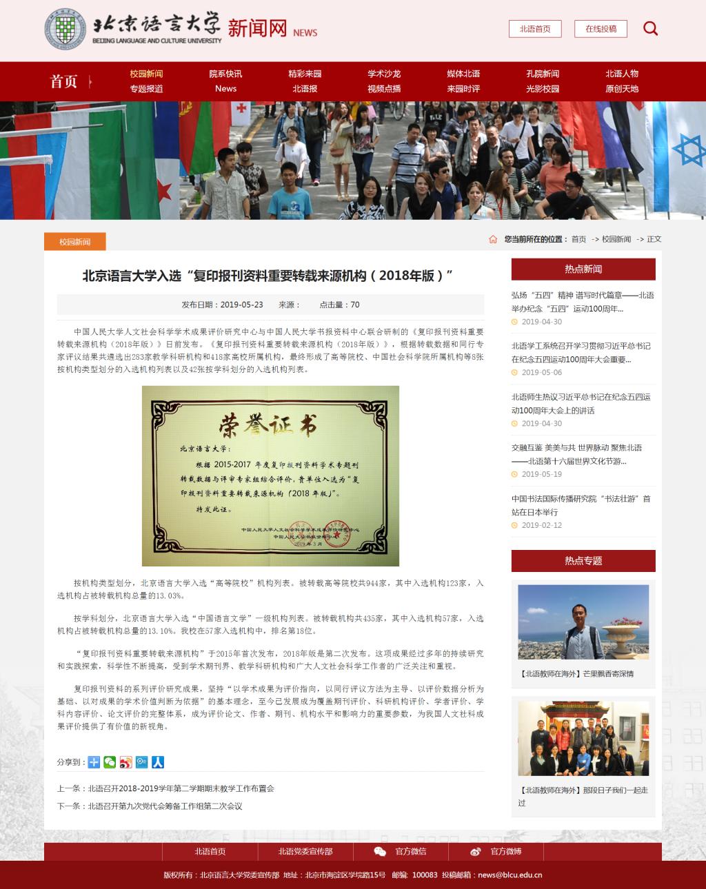 北语新闻网改版秉承“内铸和谐氛围,联系全校师生;外塑北语形象,沟通学校内外”的宗旨,彰显北语特色和门户特质。全新改版的北语新闻网从进一步服务中心工作和师生信息需求出发,强化新闻发布、文化建设、信息传播和视觉传达等功能,强调交互体验设计及视觉设计,着力提升用户浏览体验。