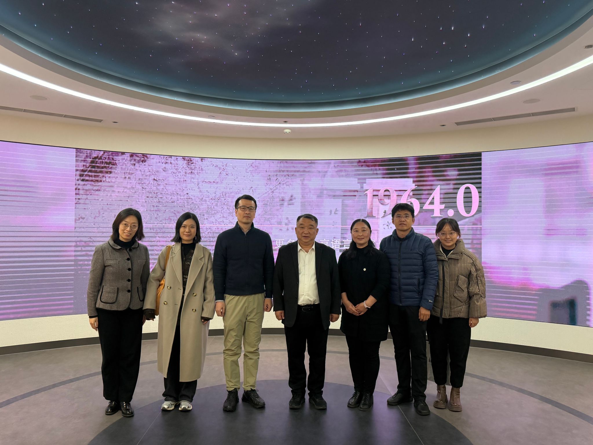 座谈前,校史馆馆长王利伟为汝涛处长一行做参观导览,介绍了学校历史沿革和在“讲好中国故事”事业中的红色基因与深厚积淀。